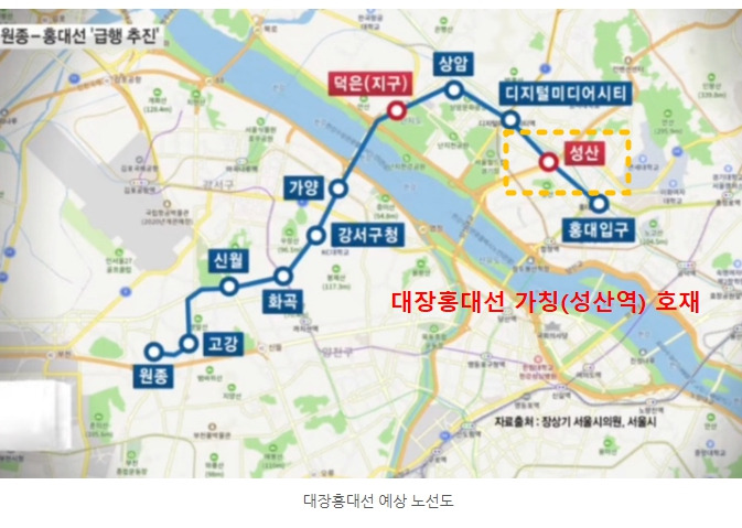 대장홍대선 가칭 (성산역) 바로 인근 개통 예정