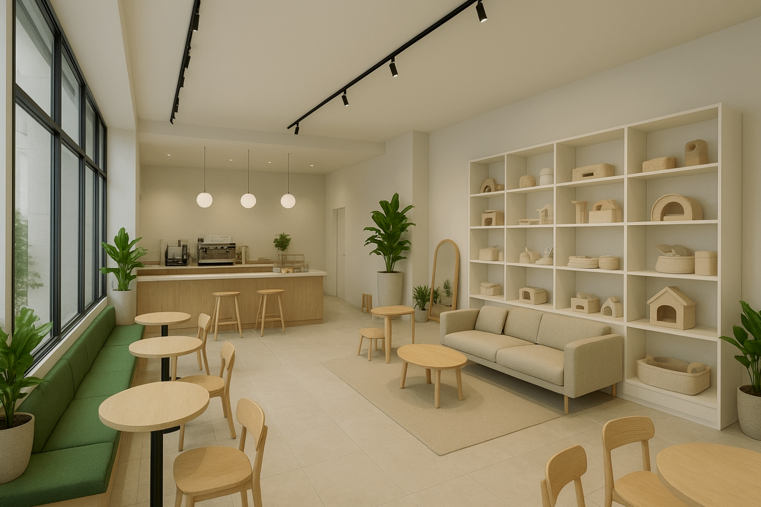 - 애견 동반 카페 + 애견 용품/간식 판매 + 소규모 놀이/체험 공간.