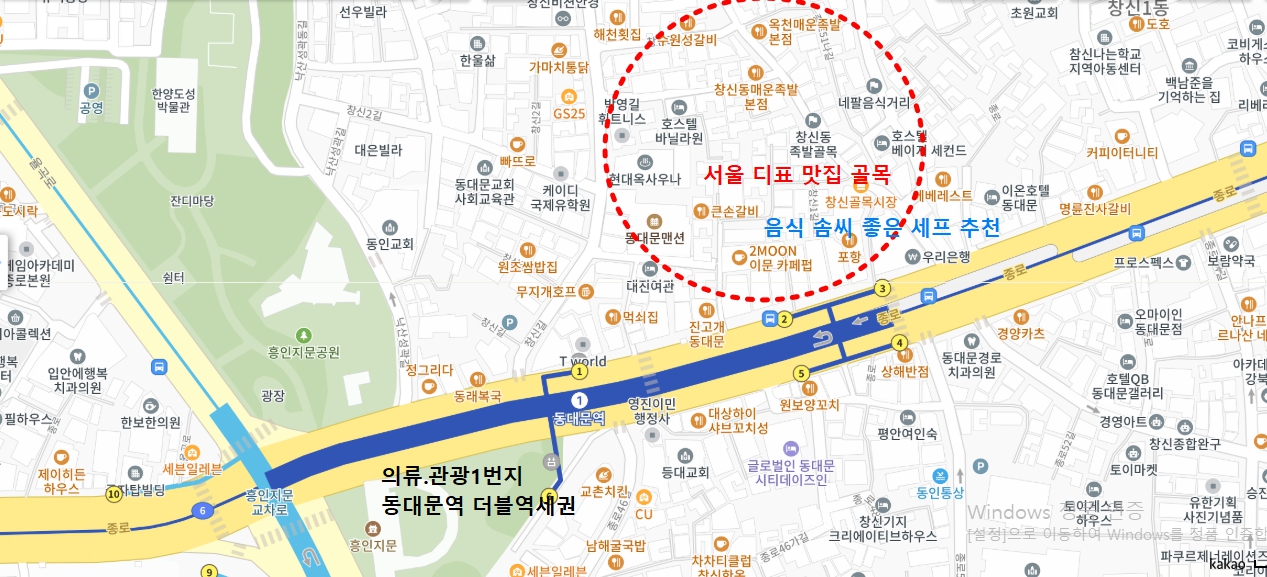 ※ 동대문 패션. 쇼핑몰의 중심 지역내 족발 및 유명 맛집이 많은 곳