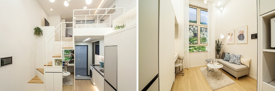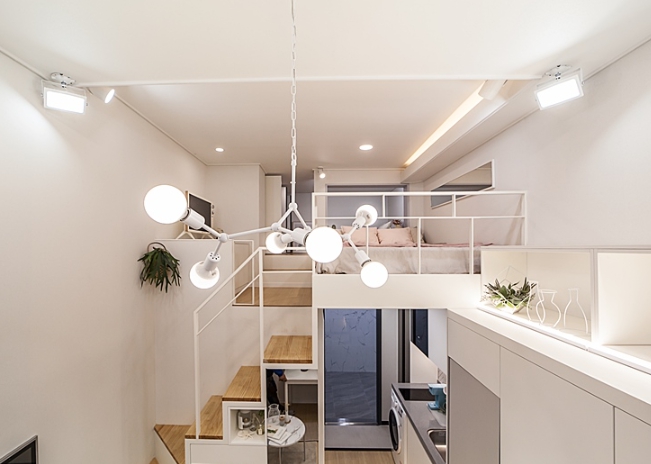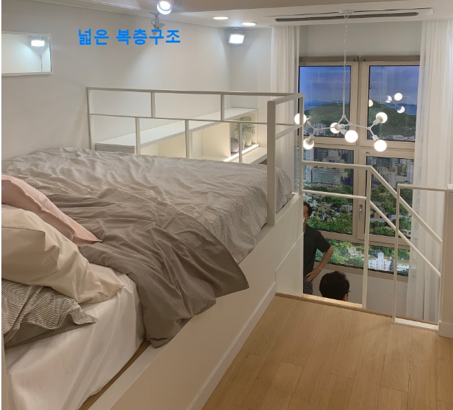 - 상층 취침, 하층 거실·업무공간 분리로