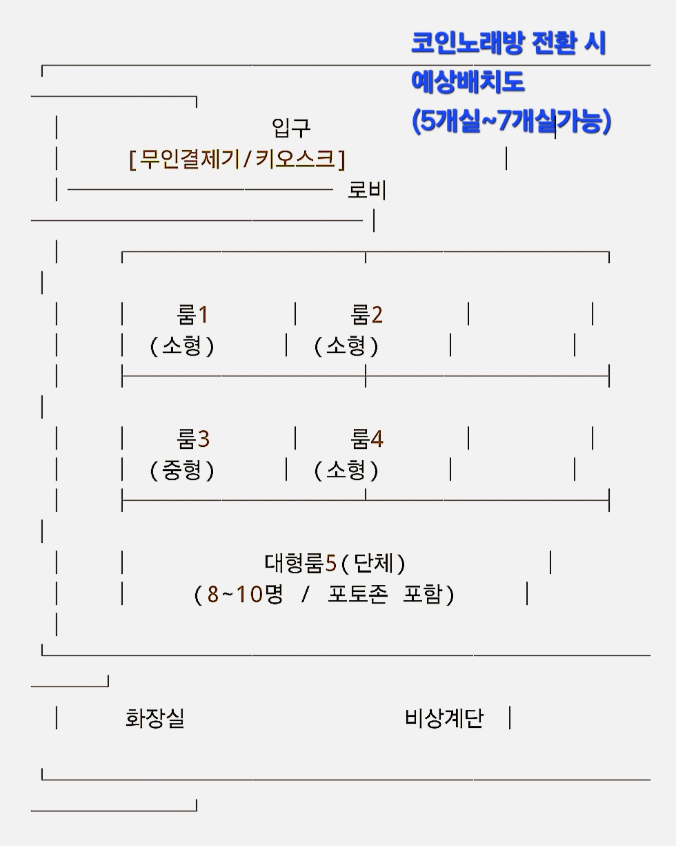 - 구조상 코인노래방·일반노래방 혼합형 전환 최적화
