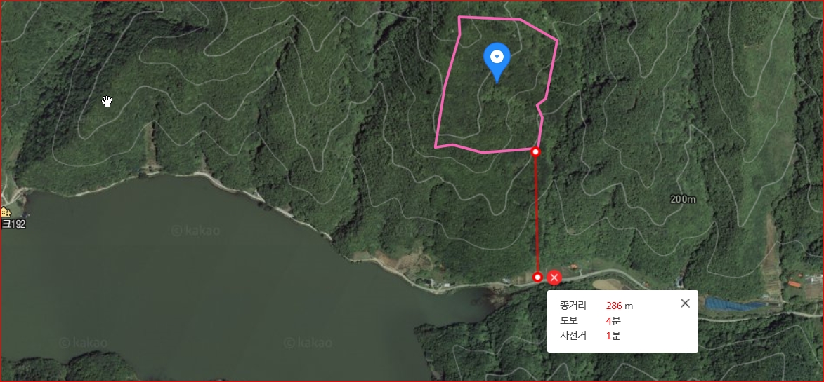 ● 주도로에서 직선으로 약 286미터 구거로 접한 임야