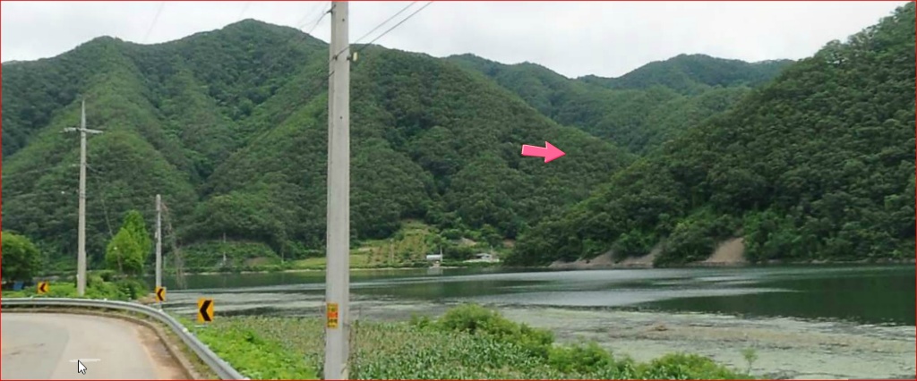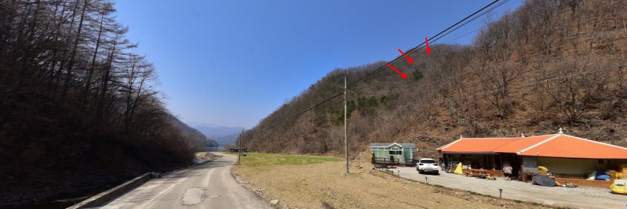 ● 화살표가 있는 본 임야로 북한강 반대편에서 전경