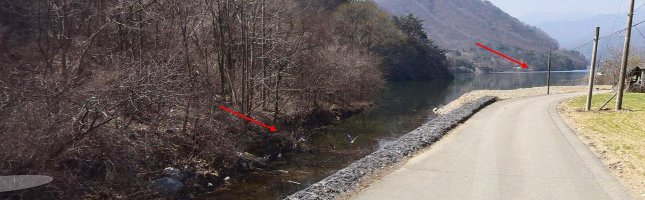 ◎ 위 편 화살표 북한강 유원지가 펼쳐져 있습니다,