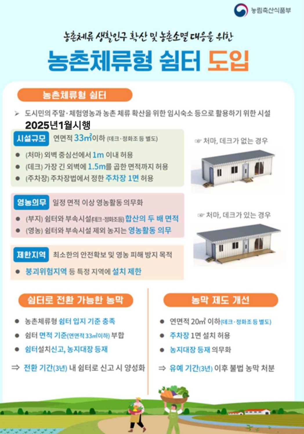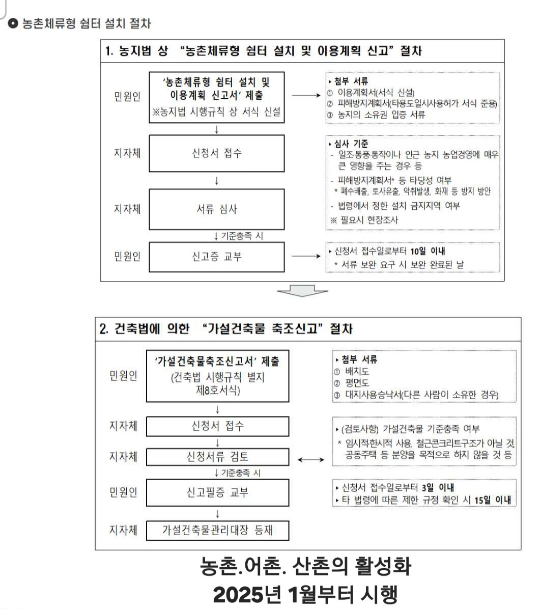 정부 발표 숙박가능 농촌체류형 쉼터 (아래 법률참고)두고 웰빙생활