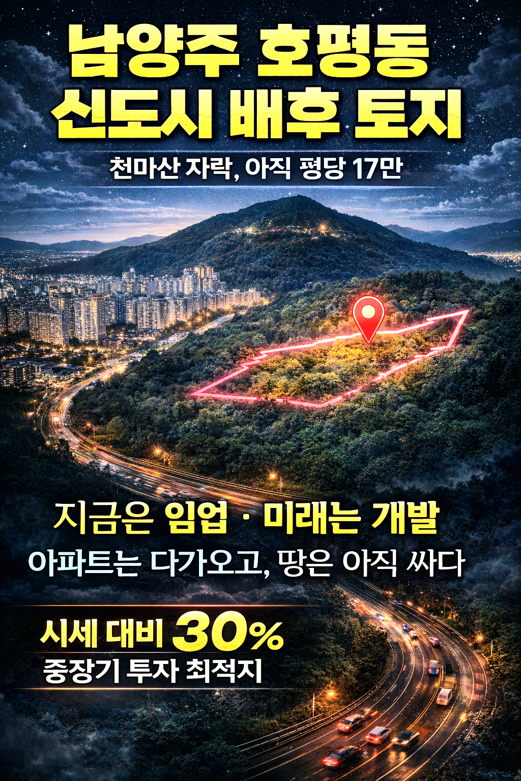 남양주 호평동 신도시 배후 토지 (시세 대비 약 30% · 천마산자락 · 개발대기 임야)