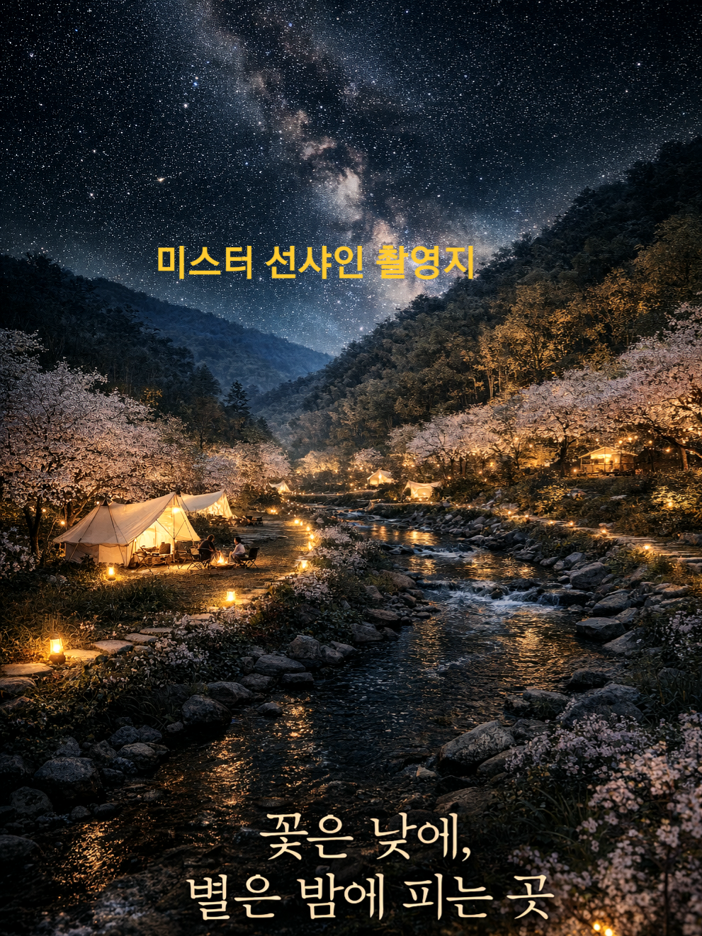 별·꽃·천·산이 어우러지는 감성캠핑장을 만들어 보세요